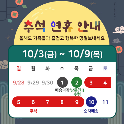 저희 위즈의 2025년 추석연휴는 10월 3일부터 10월 9일까지이며,